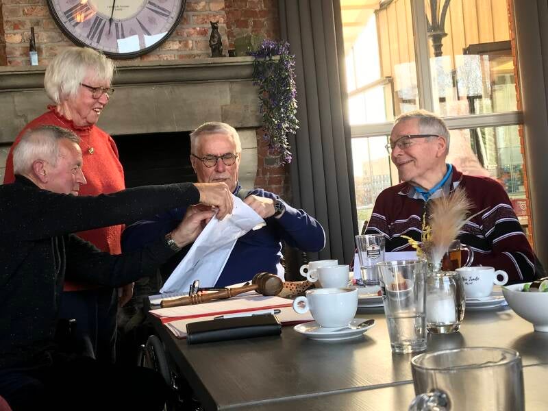 Overdracht van voorzittershamer Georges aan Hans